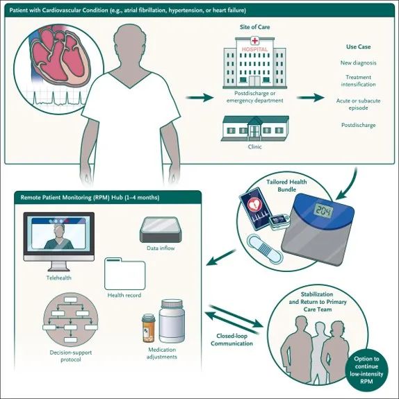 远程患者监测的目标是使用远程收集和传输的健康数据,通过捕获患者可能改变的生活方式行为(例如睡眠、活动)、控制风险因素、并在恶化之前检测临床恶化或健康状况变化来改善结果。尽管远程患者监测的用途可能很广泛,可能包括糖尿病和其他心脏代谢疾病的管理,本综述重点关注使用远程患者监测的三种最常见的心血管疾病:高血压、心力衰竭和心房颤动。此外,由于本文是关于可穿戴数字健康技术 (DHT) 的系列评论文章的一部分,因此我们的重点是符合此标准的远程患者监测方面。