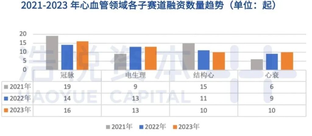 心衰是心血管领域唯一在交易数量上三年连续增长的子赛道,且金额上也是大额交易频发——今年永仁心医疗与核心医疗分别顺利完成近亿美元A轮融资和2亿元人民币C+轮融资。