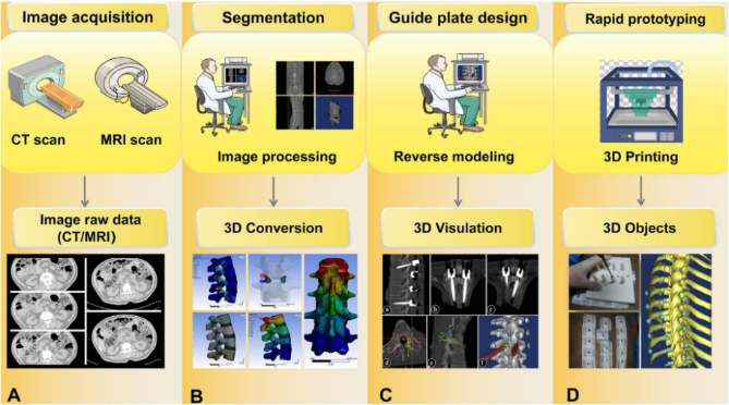 3D打印技术对于人体解剖教育、医患沟通、临床治疗方案以及适配的组织替代具有显著作用。3D打印脊柱实物模型可以直观地显示骨折椎体的形态,反映脊柱脱位和脊髓受压迫的情况,获得MRI和CT等影像学资料无法获得的解剖学资料,同时便于与患者进行治疗方案沟通。