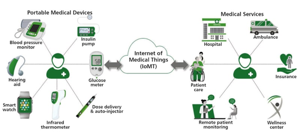 图1 – 互联医疗 – 便携式医疗设备和医疗物联网(IoMT)