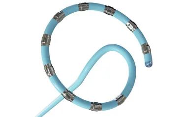 Biosense Webster公司的Varipulse脉冲场消融(PFA)导管,以激光切割的镍钛诺管材精制成环形设计,可在25毫米至35毫米的范围内灵活调节。[图片由Biosense Webster提供]