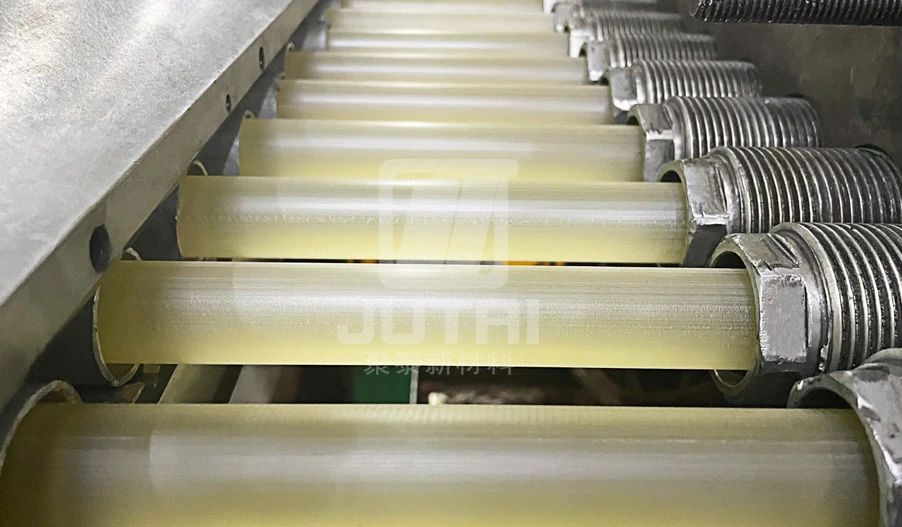 JUTAIPSU®NA是一款聚砜(PSU)型材。PSU为无定型态的聚合物,玻璃化转变温度为187℃,PSU是一款透明的工程塑料,具有良好的耐化学性、刚性和耐温性。由于聚合物中具有共轭的苯环和砜基团,PSU型材表现出较高的耐酸及盐溶液腐蚀性能,并对于洗涤剂、热水和蒸汽具有良好的耐受性。另外,PSU具有出众的抗辐射性,且离子杂质水平低。