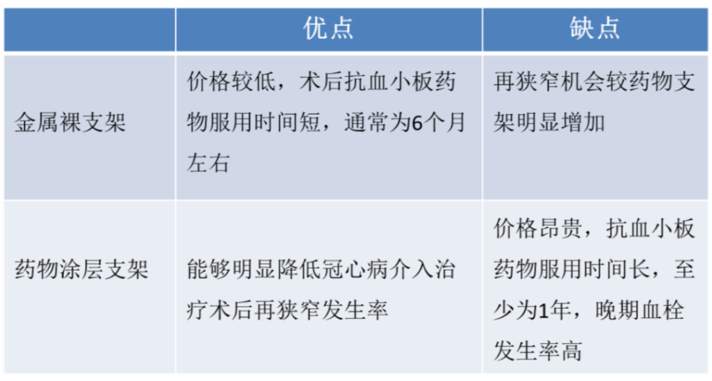 空白支架(裸金属支架):金属支架又分为不锈钢支架、镍支架、钛支架、钽支架和钴铬合金支架等。金属裸支架是不带药物涂层的支架。其优点是患者术后服用双联抗血小板药物时间短,缺点是再狭窄发生率较高。支架对人体来说是异物,人体会“攻击”它,出现血管内皮细胞增生和炎症反应,可造成通畅了的血管重新狭窄、堵塞。空白支架的再狭窄、堵塞发生率高达30%,已经渐渐不用了,因此目前仅少量用于有指征的高风险患者。