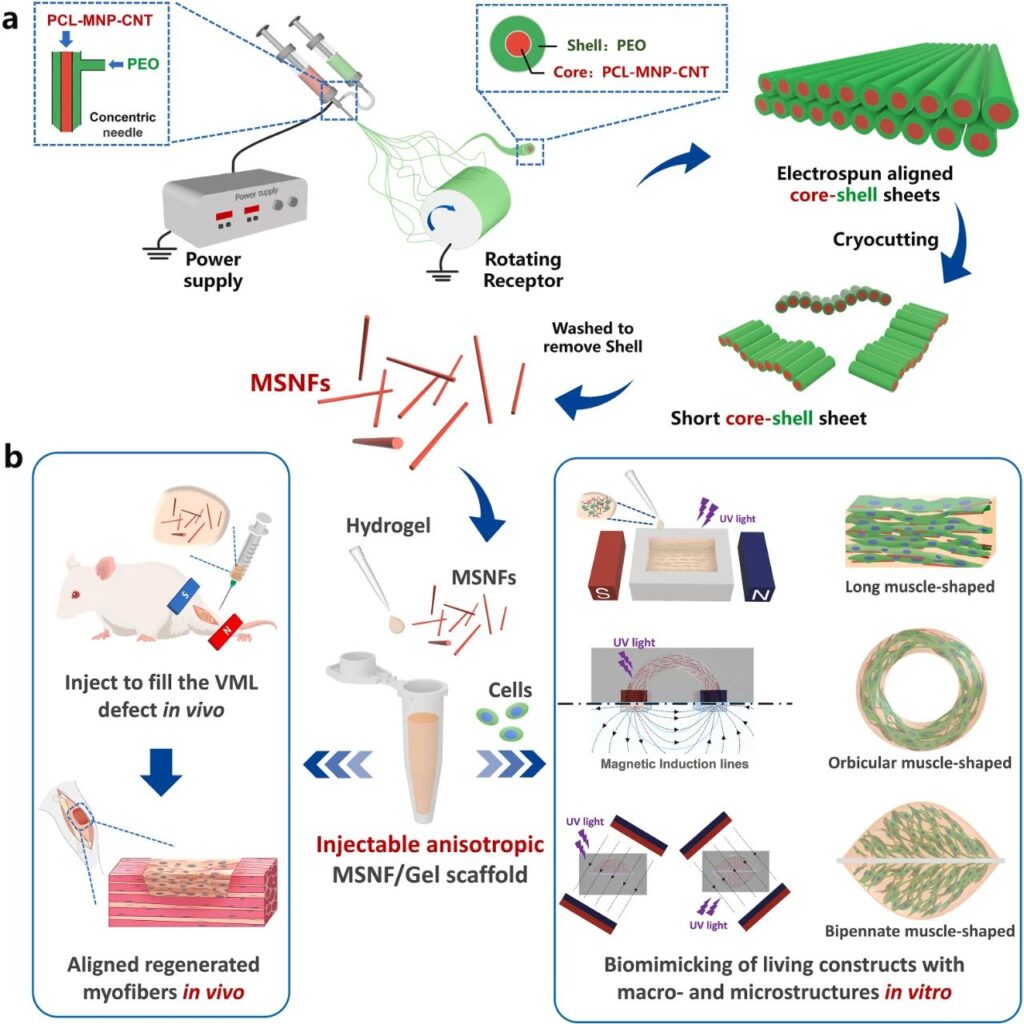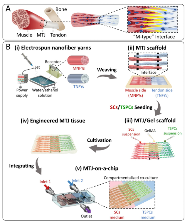 图1.仿生工程化肌肉-肌腱界面(MTJ)的制备及MTJ器官芯片的开发示意图。