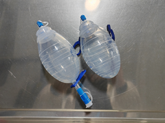 我司所生产的负压引流球为高透明硅胶制品,最低刻度为5m,规格为100ml带下通和非下通;200ml带下通和非下通以及400ml负压球。负压球上下盖为压合设计,不漏气,下通部分管子的尺寸可以根据客户需要定制.