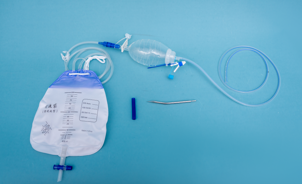 负压引流系统由引流管、引导针,硅胶引流球,引流袋组成,根据引流管的结构可分为十字型、圆型、扁平型,主要用于体表创口或切口引流。。
