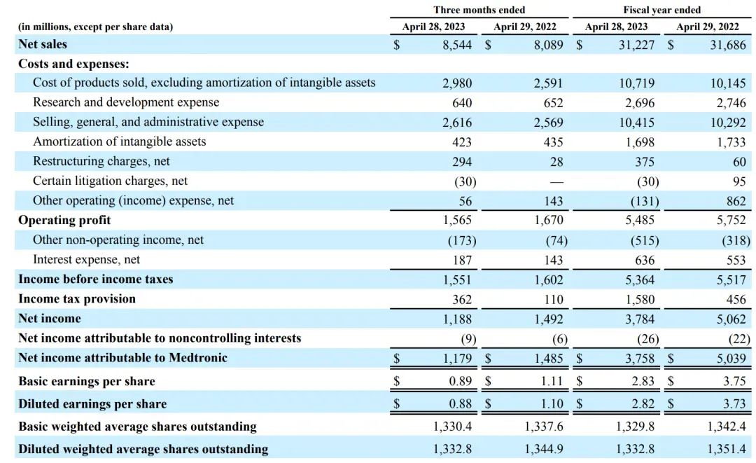 美敦力主要业务有心血管、医疗外科、神经科学和糖尿病业务四块,其中心血管占比最高。