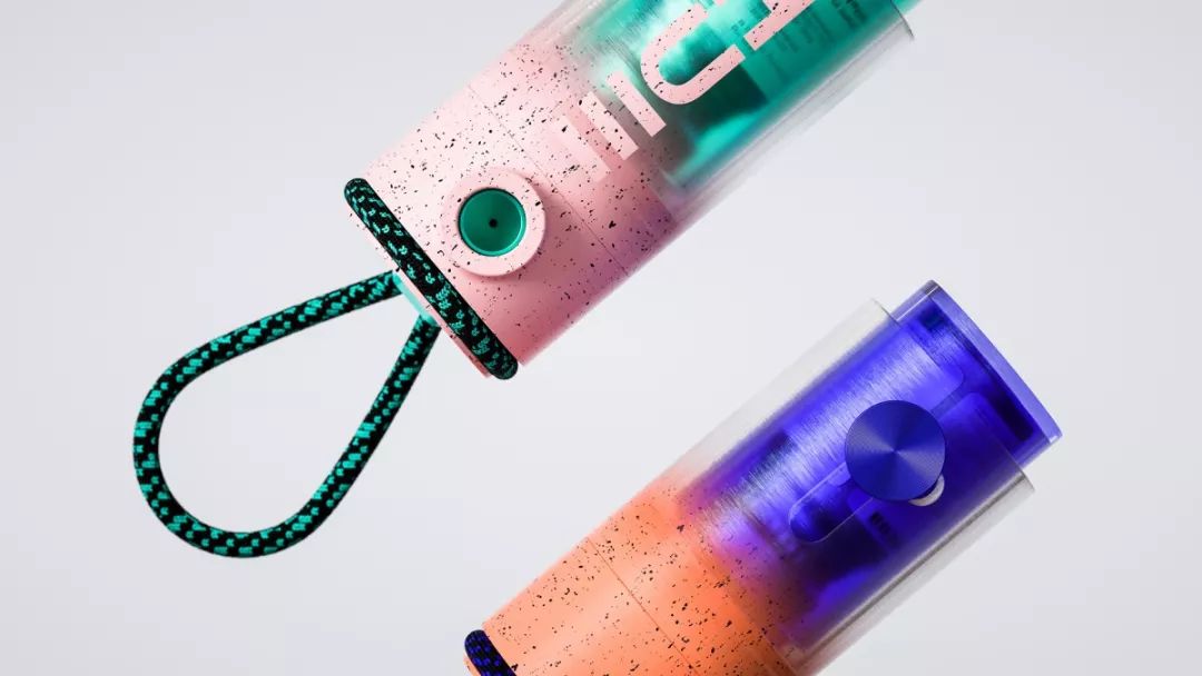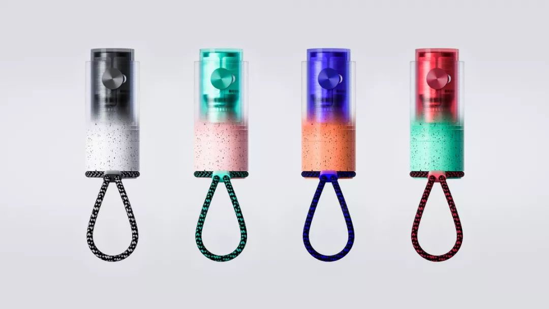 瓶盖上还有一根尼龙挂绳,具有渐变效果的配色刚好与按压喷雾的操作方式形成对比,美观又便携。