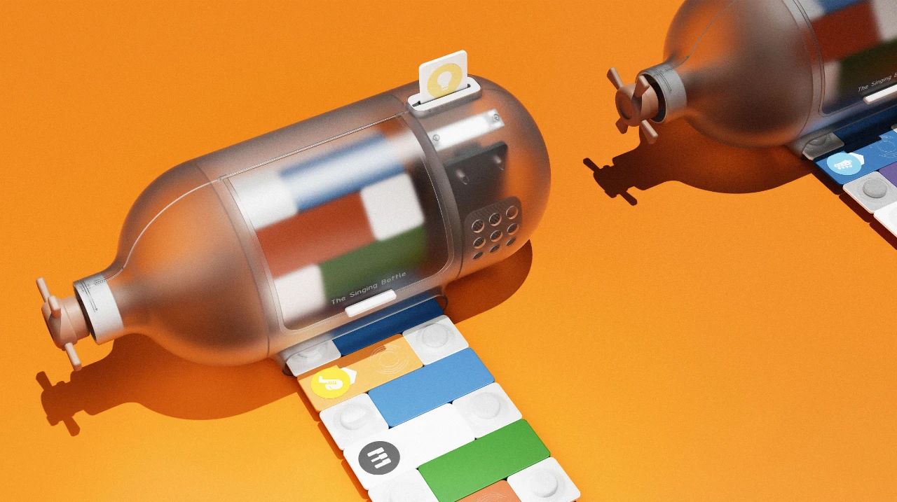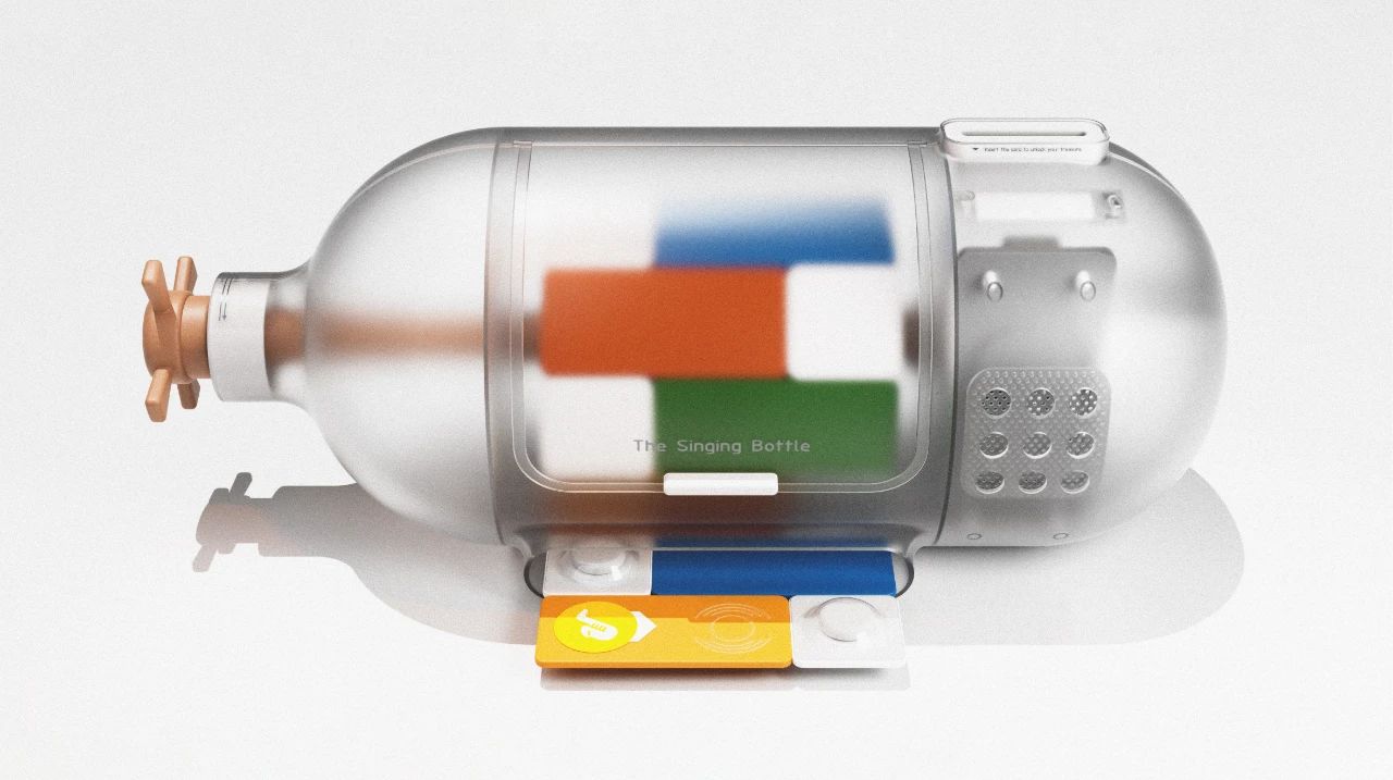 唱歌瓶是一种药片分配器,专为6至10岁的儿童设计。在治疗过程中,14-21粒个性化药片,每一粒都附在一张纸卡标签上,当药片条插入瓶子则会播放音频或者讲故事。
