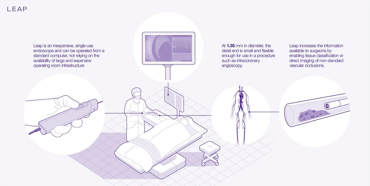 Leap 是一种内窥镜设备,是首个摄像头可以查看静脉和动脉内部的设备。