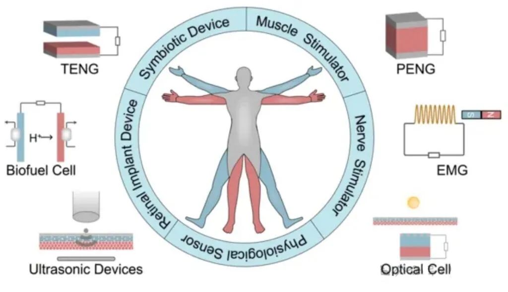 近年,纳米发电机已被植入生物体中以收集能量、感测或刺激神经和肌肉。纳米发电机可以将机械能转化为电能,主要包括压电纳米发电机和摩擦纳米发电机。