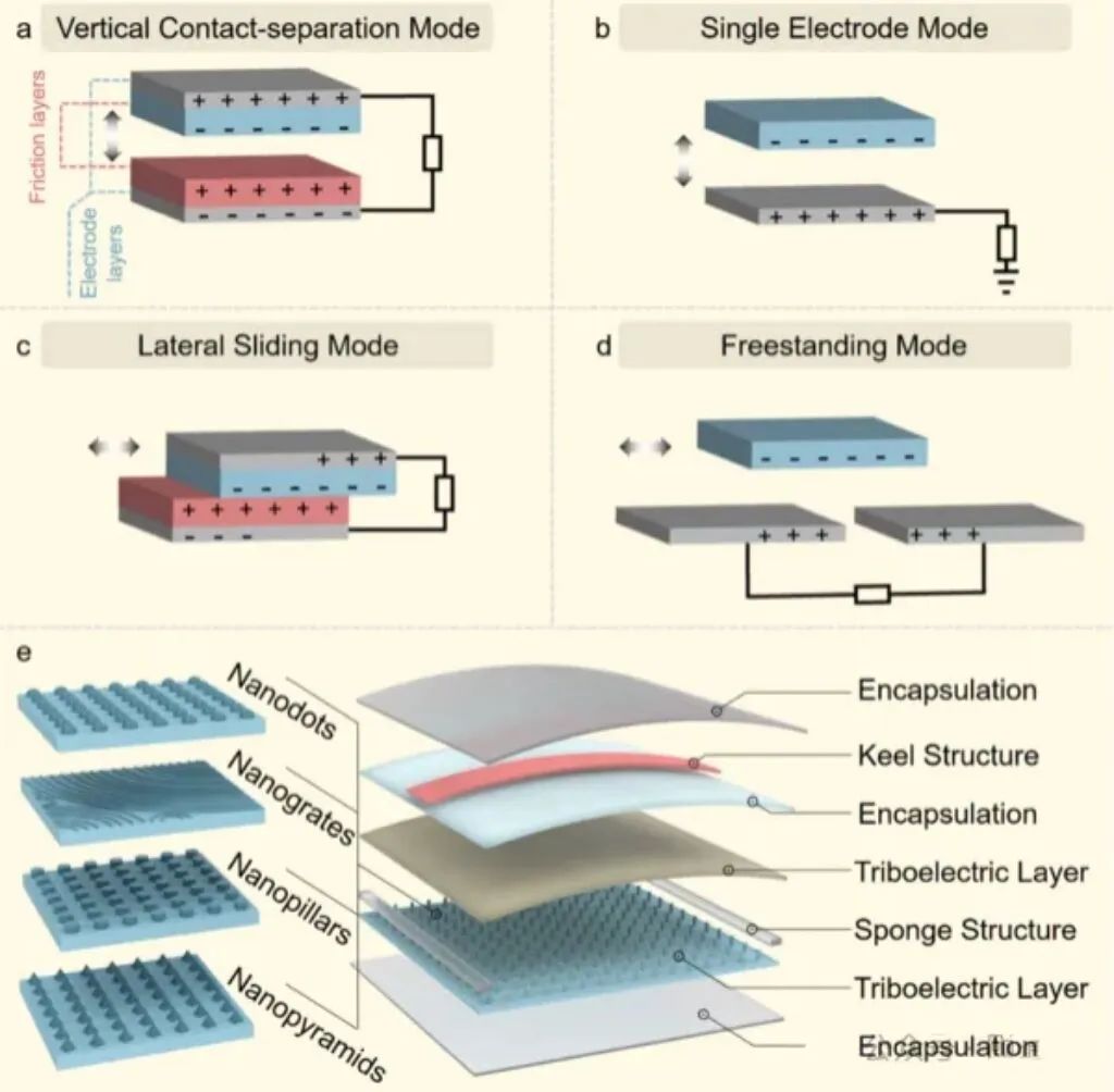 常见的静电效应可以用来为设备供电。当两种不同材料彼此反复碰撞或摩擦时,一种材料的表面可以从另一种材料的表面上夺取电子,积聚电荷,这被称为摩擦起电现象。摩擦起电的关键优点是包括天然材料和合成材料在内的几乎所有材料能够产生静电。