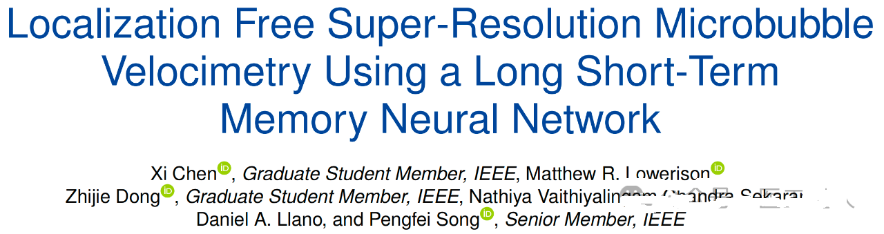 Chen, X., Lowerison, M. R., Dong, Z., Sekaran, N. V. C., Llano, D. A., & Song, P. (2023). Localization free super-resolution microbubble velocimetry using a long short-term memory neural network. IEEE transactions on medical imaging.