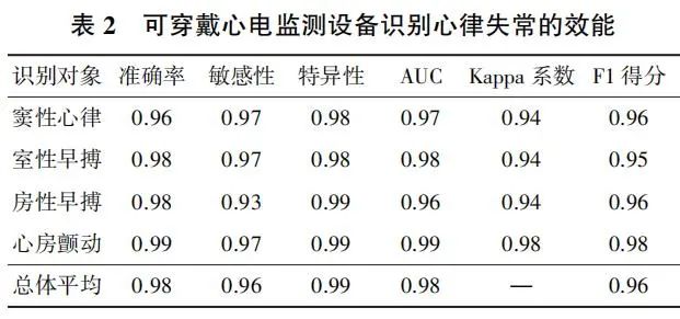 2.2 可穿戴心电监测设备对心律失常识别的一致性和效能分析
