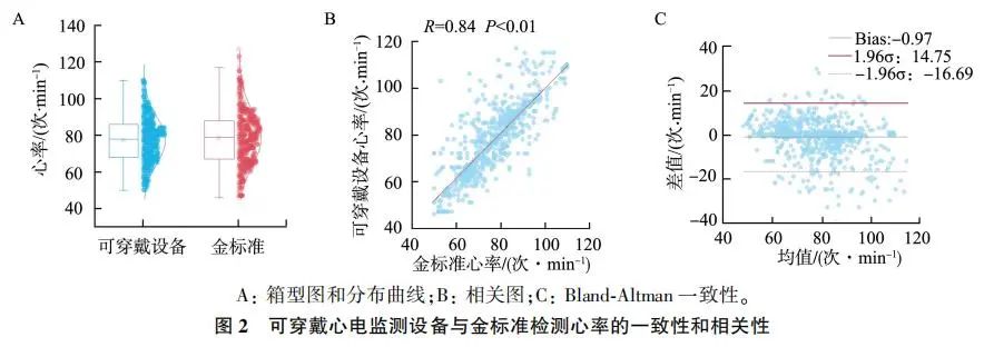 2.3 可穿戴心电监测设备检测心率的一致性和相关性分析