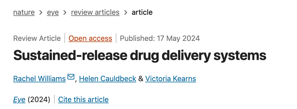 2024年5月17日英国利物浦大学眼与视觉科学系研究团队发表在「Nature」子刊「Eye」的「Sustained-release drug delivery systems」即「药物缓释递送系统」。