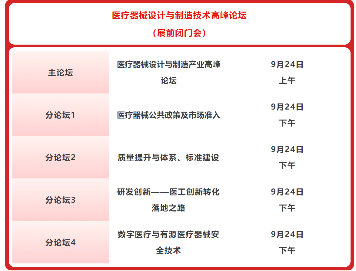 2024上海医疗设备展Medtec重磅策划展前闭门会医疗器械设计与制造技术高峰论坛,峰会将以 “主论坛+分论坛” 形式举行。嘉宾阵容全面升级,行业内专家学者将围绕中外法规政策、质量标准体系、医工结合临床需求及科研成果、有源医疗器械前沿技术展开深度探讨,为与会者带来专业的行业指南、生产指导及发展指引。