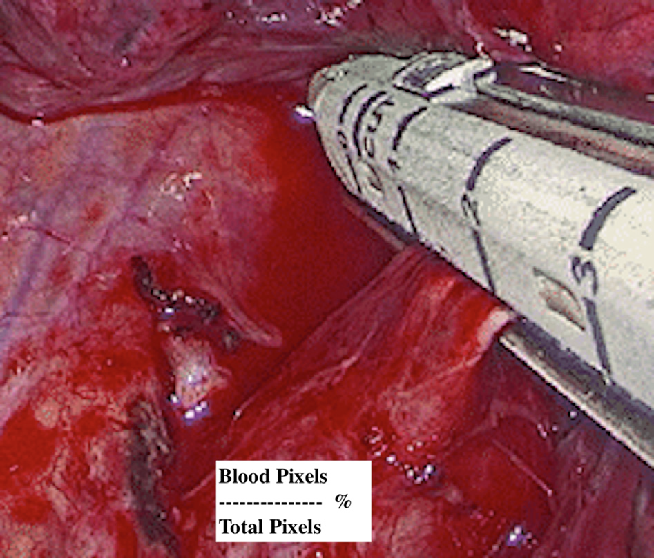 图3 用于评估术中图像的计算机视觉算法。计算手术期间一系列图像的血液与总像素的比率,可准确地估计术后失血量。