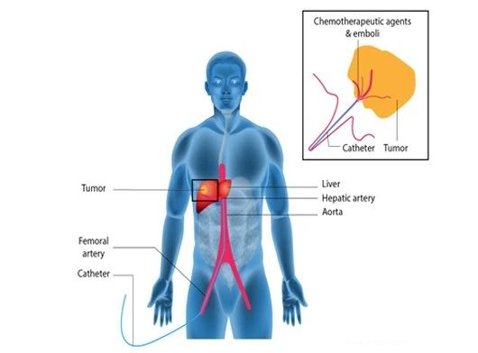 将导管选择性或超选择性插入到肿瘤供血靶动脉后,以适当的速度注入适量的栓塞剂,使靶动脉闭塞,引起肿瘤组织的缺血坏死。使用抗癌药物或药物联合微粒、微球进行栓塞可起到化疗性栓塞的作用,称之为TACE(transcatheter arterial chemoembolization)。