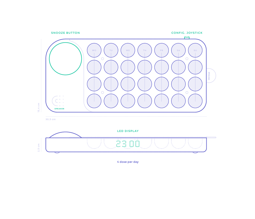 这是一款提醒你按时吃药的智能药盒。主要是为那些忘记吃药的老年人设计的,也是一个可配置警报的数字药盒。当你忘记吃药的时候,警报就会响起提示你按时吃药了。
