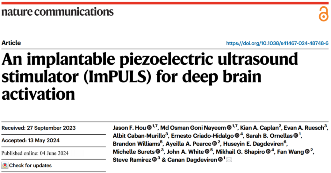 本研究设计了一种植入式压电超声刺激器(ImPULS ),它可以将声能直接精确地传递到大脑深层区域的神经元群,并通过体外/体内刺激实验证明了ImPULS 是一种有效的神经调节工具。
