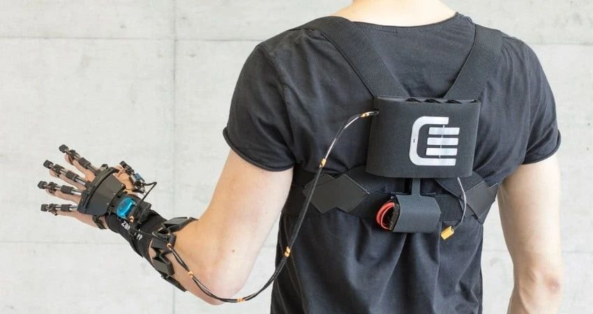外骨骼由一个手部模块、一个腕带传感器和一个背包组成。手部模块使用皮带固定在患者的手上,而患者则佩戴腕带和背包。当患者开始运动时,腕带将肌电图 (EMG) 信号传输到背包中装有电机、电池和控制电子设备的小型计算机。计算机从传入的数据中识别出患者想要执行抓取动作并激活电机。电机拉伸和弯曲板簧,形成外骨骼的手指。苏黎世联邦理工学院健康科学与技术系的研究员 Jan Dittli 说:“每根手指,外骨骼施加 6 牛顿的力,使外骨骼能够覆盖 80%的日常运动。