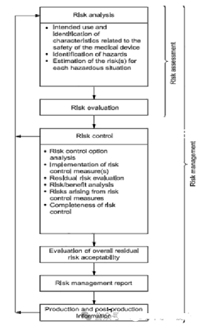 请注意,ISO 14971仅提供了一个框架,没有规定危险、可接受的风险或如何量化风险。图1是一个典型的风险管理工作流程。