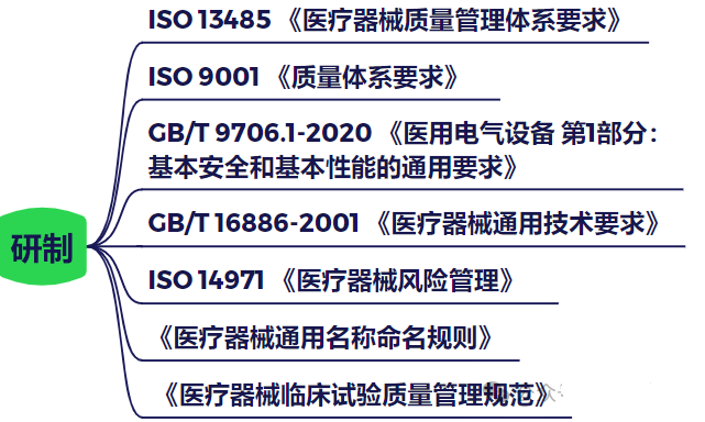 首先是医疗器械的研制,需要符合质量体系的要求,最常用的是ISO13485和ISO9001。