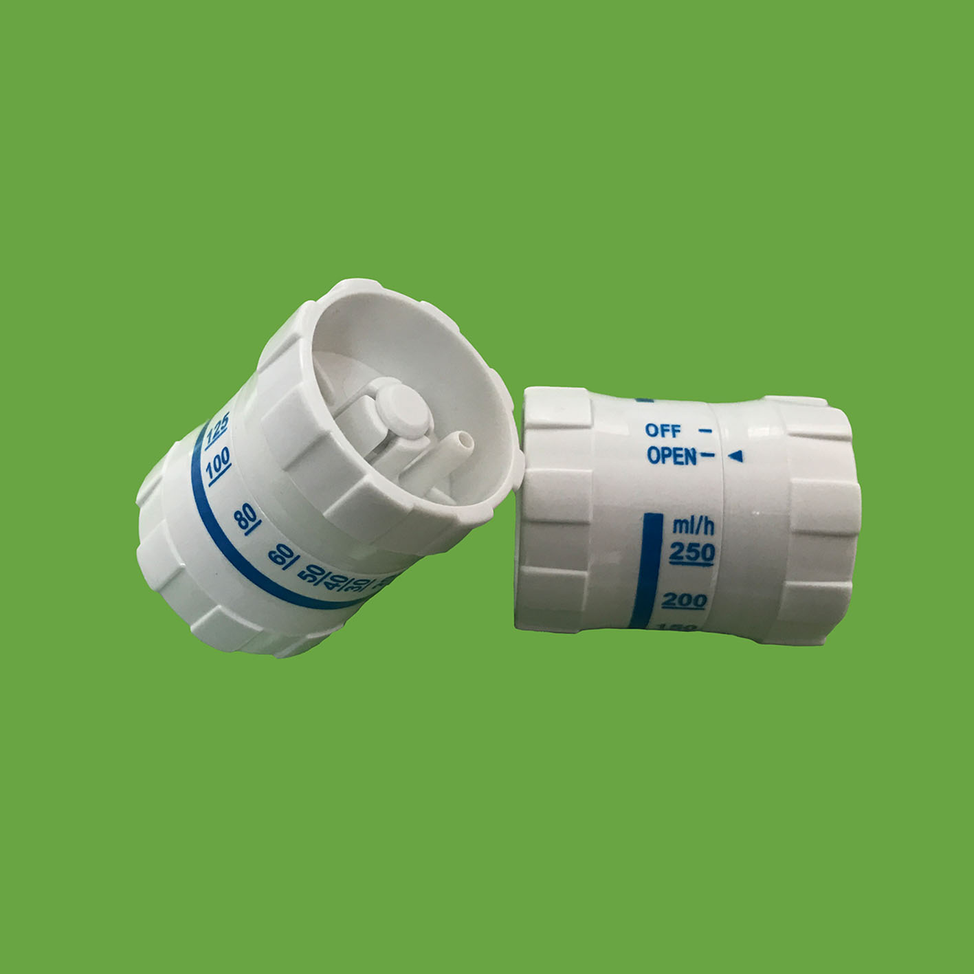 刻度流量调节器是一种可加载在输液器或者输液延长管上的装置,內部通路与药液接触,外部带刻度标识并可按刻度设定流量,适用于临床静脉输液调节流速。