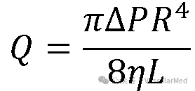 其中Q为体积流量;P为管体两端压强差;R为管体半径;η为粘滞系数;L为管体长度。