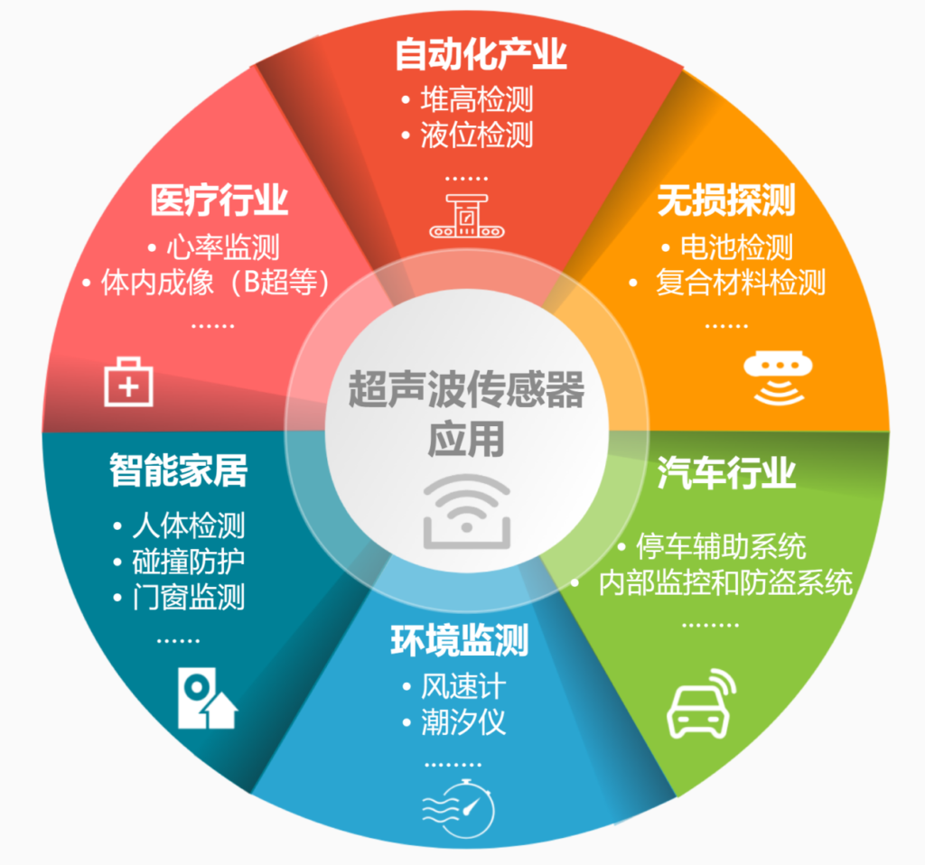 超声波传感在生物医学成像、工业无损检测和运输系统等各个领域都有广泛的应用。在生物医学成像领域,超声波传感器因其价格实惠、实时成像以及无电离辐射等诸多优点成为早期疾病诊断的常用工具。在工业领域,超声波技术也被广泛用于流量和液位测量、过程控制以及材料无损检测等应用。此外,基于超声传感的系统在交通运输中也发挥着至关重要的作用,促进了诸如倒车雷达、物体识别和检测以及自动避障等应用的实现。图1展示了超声波传感器的应用实例。