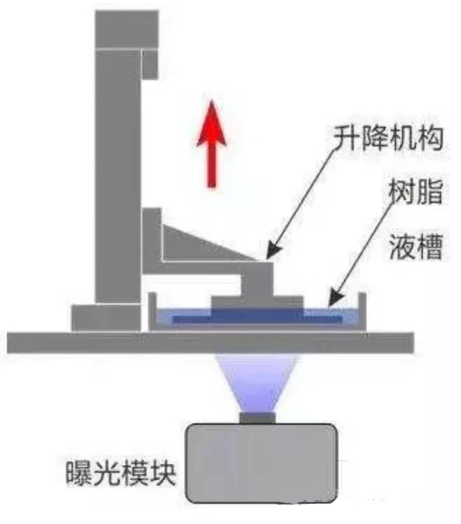 DLP原理与SLA相似,原料均为光敏树脂,最大的区别是两者所用光源不同,DLP使用来自投影仪的UV光,打印时光源保持静止,一次可固化整个树脂层。
