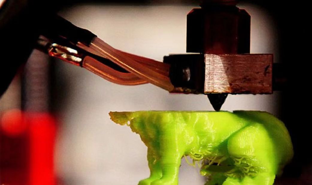 FDM又称熔丝制造(fused filament fabrication,FFF) ,工作时喷头水平移动,通过挤压将其中的热熔性材料送出,待挤出的材料与上一层完全结合后,喷头上移,进行下一层打印。FDM的最大优势是材料成本低廉,但对于复杂模型,较长的打印时间、表面纹理不够清晰、移除支撑材料困难是其技术限制。