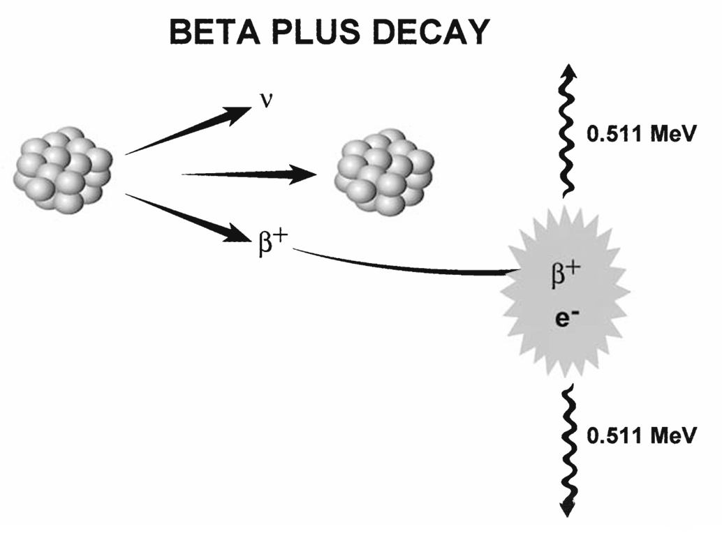 放射性同位素标记的示踪剂在体内衰变,释放出正电子。这些正电子是带有正电荷的基本粒子。