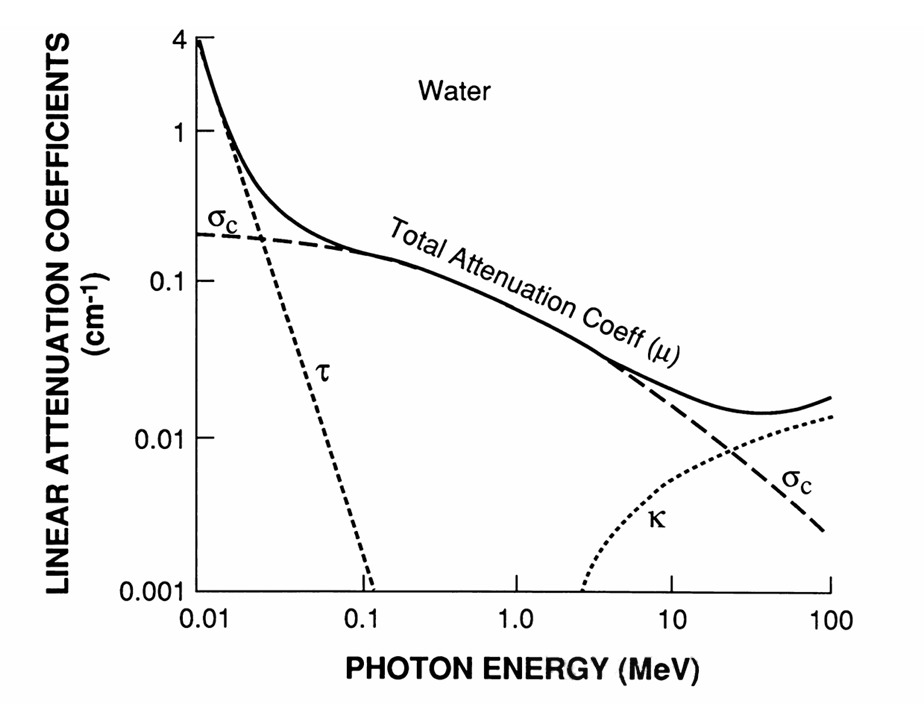 • 随着能量的增加,康普顿散射开始占据主导地位。