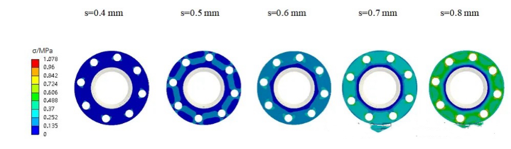 图1 不同施压距离(s)下吻合端面的内表面应力分布