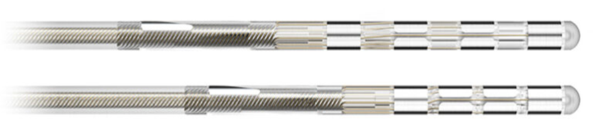 美敦力的SenSight深度脑刺激和脑信号传感器,作用是将电刺激准确、稳定的传输至患者脑内的靶点核团,其植入是脑起搏器疗效和术后管理的关键环节之一。为全球首个获得中国国家药监局、美国FDA和欧盟CE全部批准的可感知、可兼容3.0T和1.5T全身核磁扫描的脑起搏器方向性电极系统