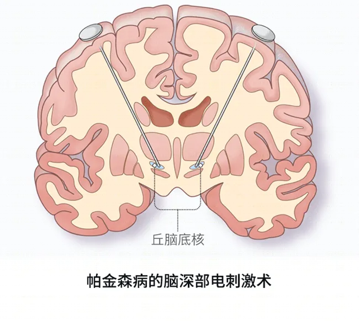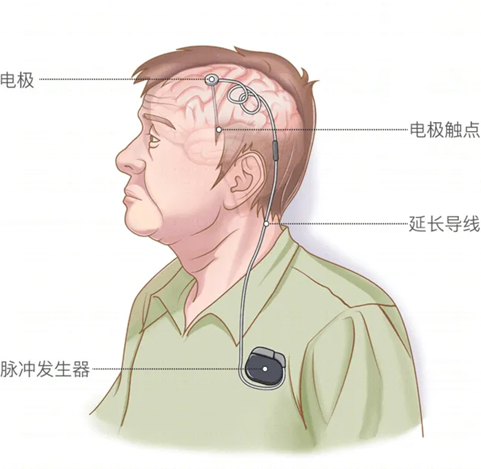 DBS疗法主要是将电极植入到患者脑内,运用脉冲发生器刺激其大脑深部的某些神经核,纠正异常的大脑电环路,从而减轻这些神经方面的症状, 显著提高患者生活质量。