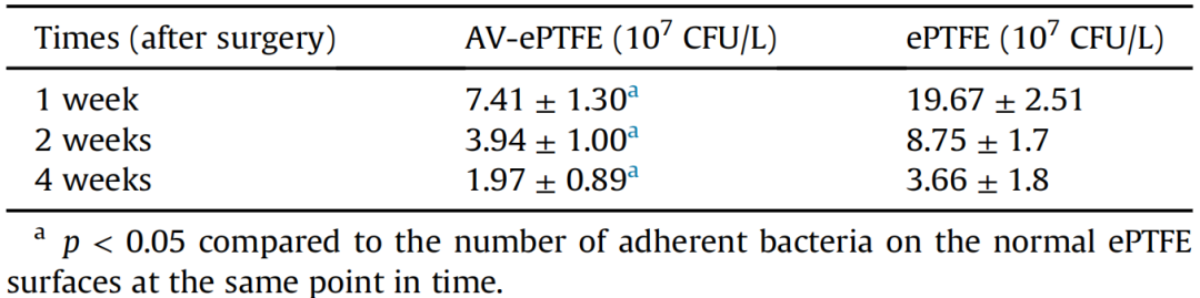表 1:细菌粘附试验(材料表面上表皮葡萄球菌的菌落形成单位)。
