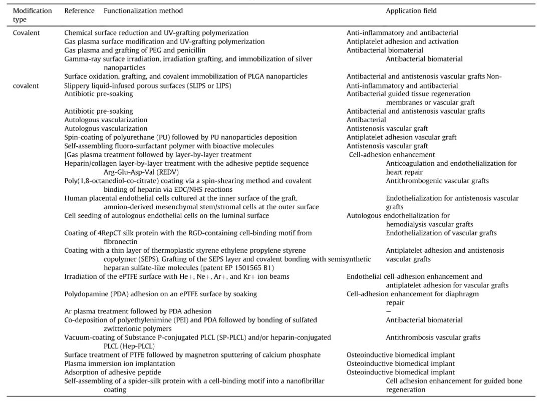 三、ePTFE 的表面改性和官能化以解决医疗问题