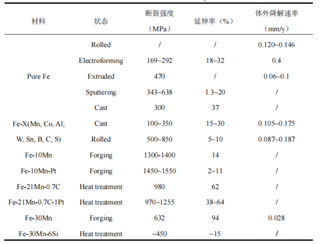 强度高但腐蚀慢、产物难清除。虽可强化纯铁及调节腐蚀周期,但难在不损害生物相容性前提下同时获得高腐蚀速率和优异力学性能,且铁的磁性和腐蚀产物吸收机制不明。