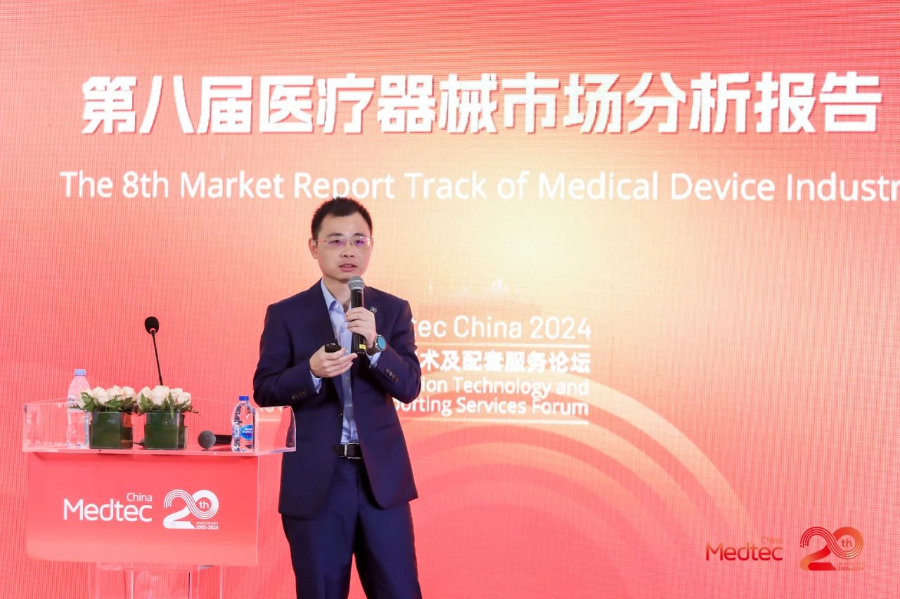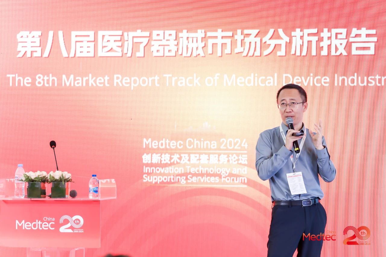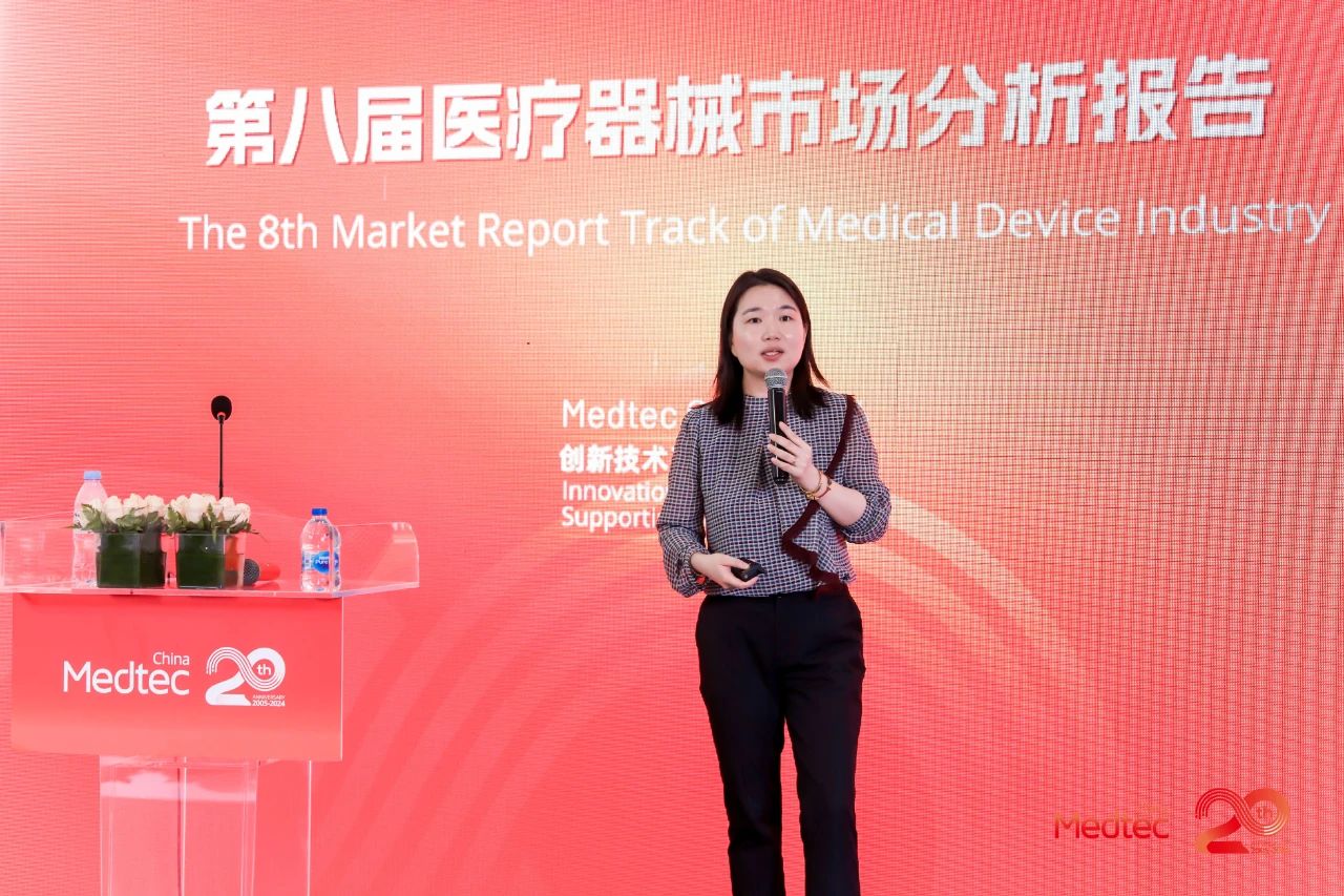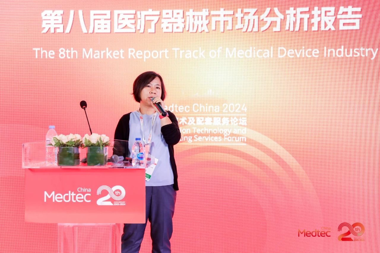 Medtec 2024 现场第八届医疗器械市场分析报告会议邀请到颐道资本合伙人赵一珍,弗若斯特沙利文咨询合伙人及董事总经理毛化,邦勤资本总经理刘明宇及艾意凯咨询合伙人王韵之等市场分析专家,独家分享医疗器械市场最新发展趋势、热点、增长点及变化。现场座无虚席,周围站满了听讲的观众。