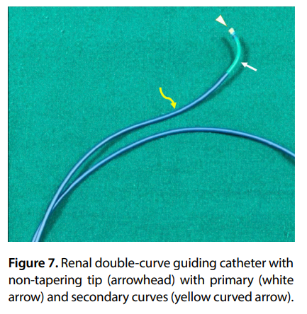 Renal double-curve catheter:这是一种头端向下的双弯导管。它是专门为锐肾动脉开口而设计的。