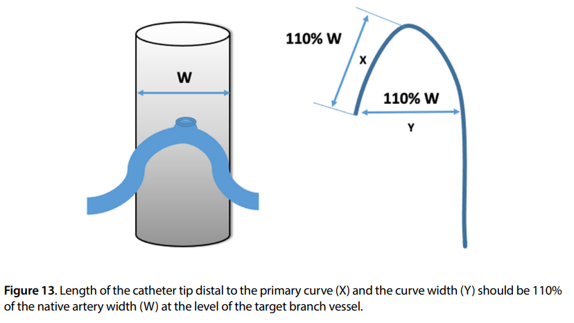 选择特定导管的原则取决于目标动脉的起始角度和入路部位(股动脉或肱/桡动脉)。开口狭窄的存在妨碍了在病变部位进行高压注射,因为它可能导致血栓远端栓塞。根据所需的移动方向选择导管。