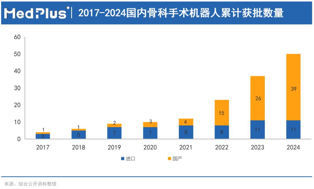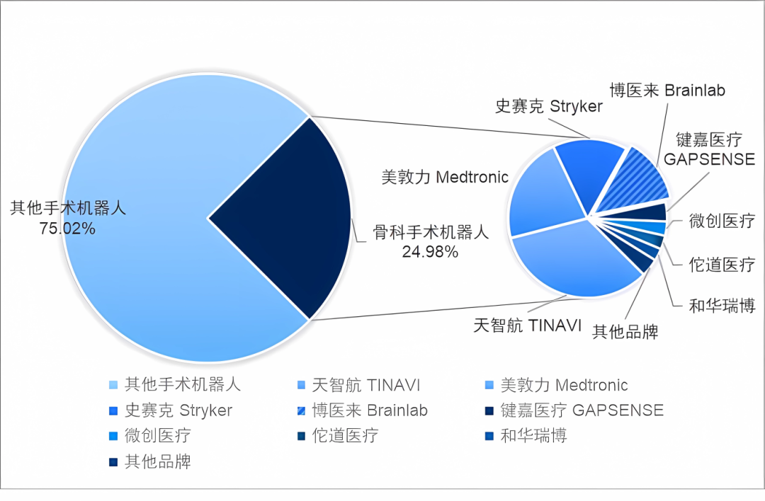 同时,由于各地采购文件中也接连提出鼓励采购国产设备的要求,国产品牌的市场接受度进一步提升,骨科手术机器人采购的国产化率从64.71%上升至75.00%。
