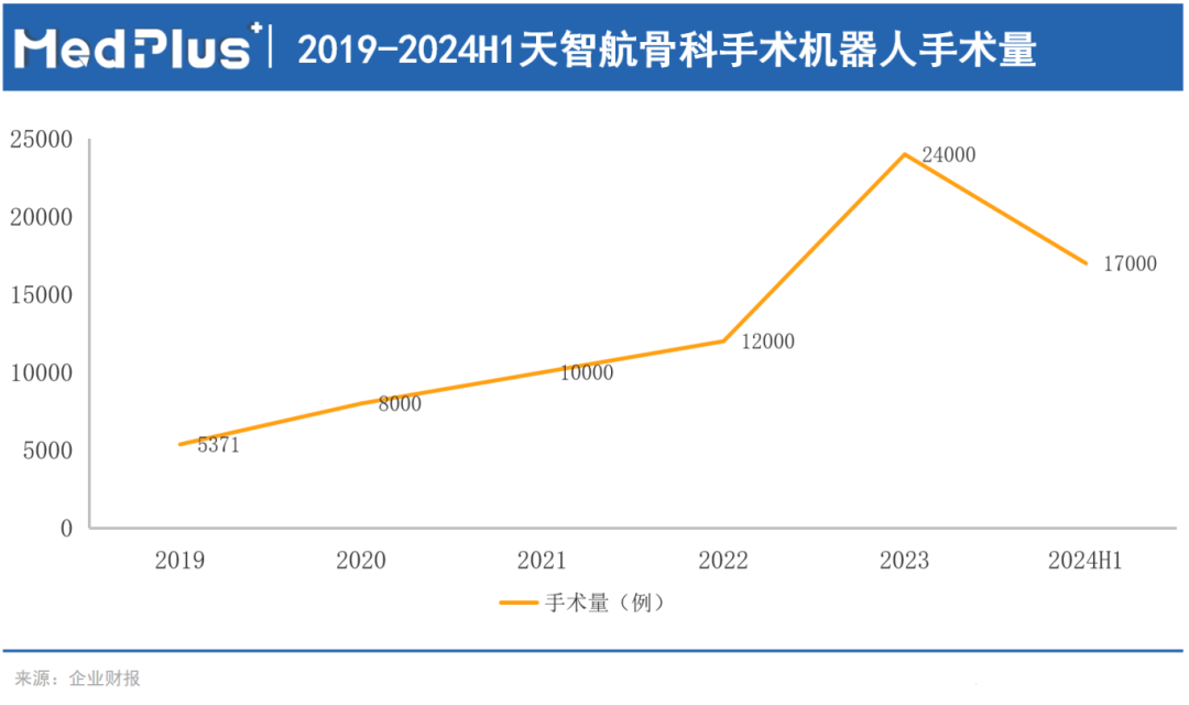 天智航的财报显示,2024年上半年,天玑骨科手术机器人开展手术数量超过1.7万例, 较上年同期增长超70%。截至2024年6月30日,天玑骨科手术机器人累计开展手术数量超过8万例。