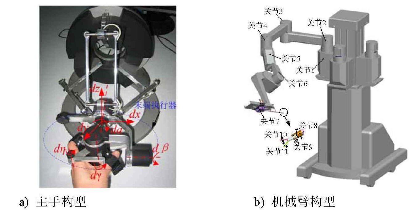 腹腔微创手术机器人系统的工作模式应为主从式操作模式,即医生通过操作主操作手来控制从手机器人运动,从手机器人的功能是代替医生把持特制的手术器械,并在医生的控制下完成手术操作的基本动作。