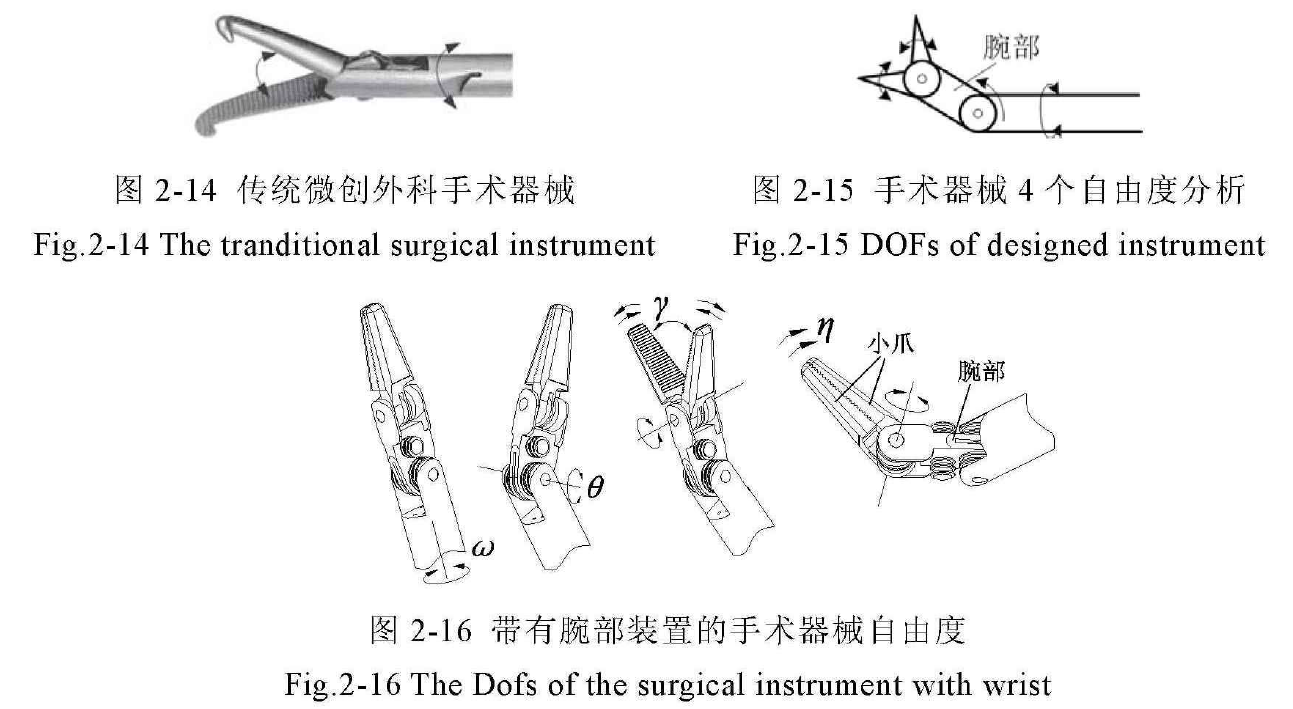 基于丝传动的带有腕部装置的手术器械这一构型提高了手术操作的灵活度,但这种构型的缺点是腕部运动和小爪运动之间存在一个耦合运动。
