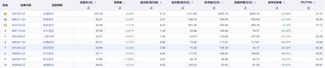 图 医疗设备行业市值 TOP10(截至2024年9月23日)