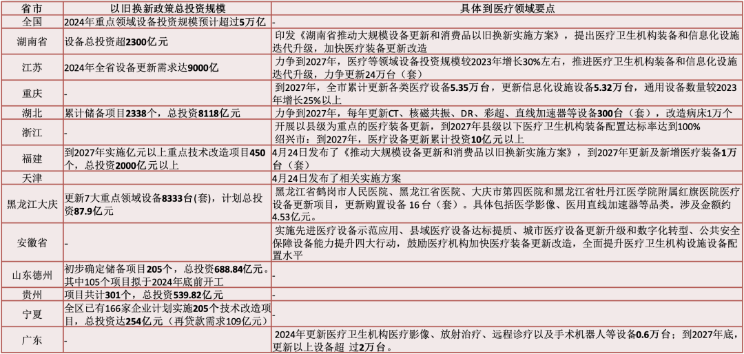 与此同时,地方政府的支持在政策落地过程中发挥了关键作用。30多个省、自治区和直辖市相继发布了推动大规模设备更新的具体行动方案,明确了设备品种、资金总额以及资金来源等细节。中央财政支持与地方财政以及医院自筹资金共同构成了多层次的资金来源,以确保政策的顺利推行。对于地方财政较为紧张的地区,中央财政配套的比例将适当增加,确保政策的公平覆盖和实际落地。